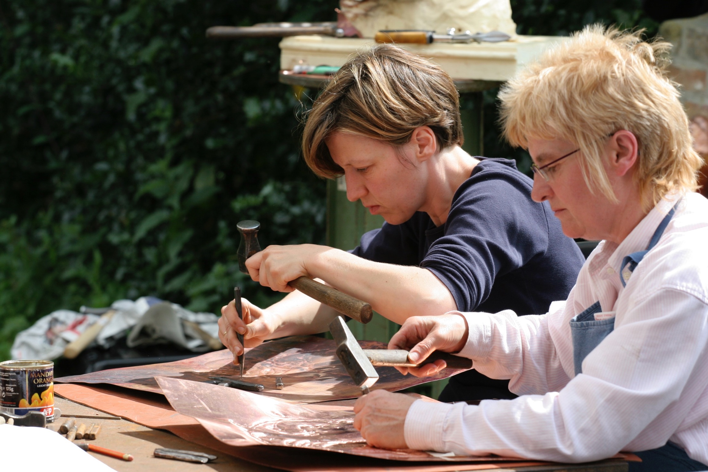 Finesse, en geen brute kracht is aan de orde. Geduld en fijngevoeligheid komen erbij kijken. Vuur is ook van de partij! Door de vele kleine slagen wordt het koper hard en breekbaar, maar onder de wondere alchemie van vuur en water wordt het weer gewillig en werkbaar.